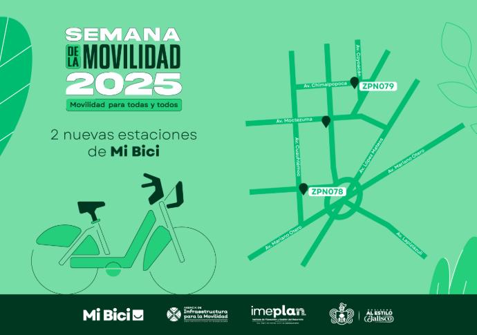 En el marco de la Semana de la Movilidad 2025, Mi Bici anuncia la próxima instalación de 2 nuevas estaciones hacia Zapopan: la primera ubicada en los cruces de Nezahualcóyotl y Moctezuma, y la segunda en Coyoacán y Chimalpopoca; mientras que una estación será reubicada en Plaza del Sol para atender la creciente demanda de la zona.